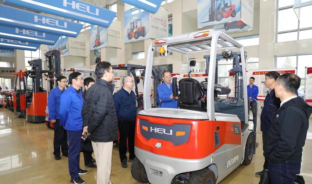 楊澤世一行先后前往合力展廳、橋箱事業(yè)部和電動(dòng)分公司實(shí)地觀摩、了解合力黨建成果及生產(chǎn)經(jīng)營(yíng)特色。座談會(huì)上,楊澤世充分肯定了合力通過(guò)黨建領(lǐng)航促進(jìn)企業(yè)實(shí)現(xiàn)高質(zhì)量發(fā)展的鮮明特色,并認(rèn)真聽取了合力相關(guān)部門對(duì)工業(yè)車輛改造資質(zhì)、車輛安全監(jiān)管、車輛上牌和加裝安全識(shí)別系統(tǒng)等現(xiàn)狀分析及建議,表示后續(xù)會(huì)持續(xù)做好有關(guān)問(wèn)題的調(diào)研,進(jìn)一步完善相關(guān)制度和標(biāo)準(zhǔn),為企業(yè)創(chuàng)新提供支持;同時(shí)希望合力能借助長(zhǎng)三角一體化發(fā)展的契機(jī),多開展一些合作交流,促進(jìn)技能人才的培養(yǎng)。