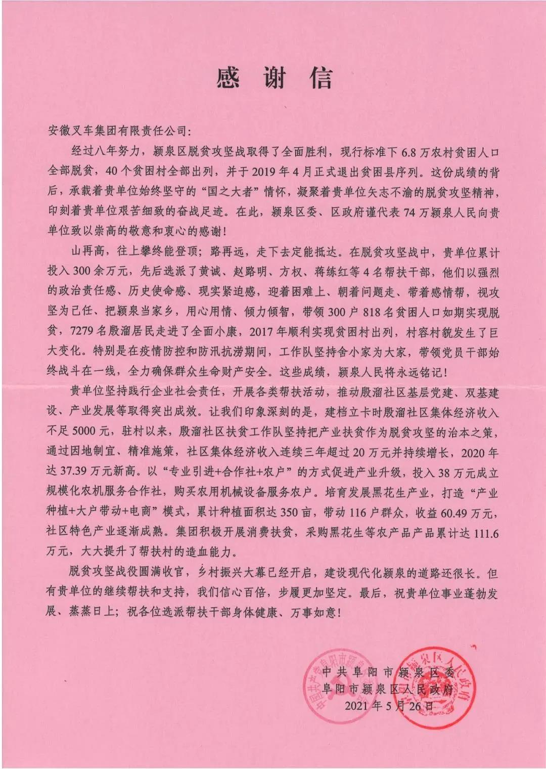 據(jù)悉,在殷溜社區(qū)八年脫貧攻堅戰(zhàn)期間,叉車集團以高度的政治責任感和歷史使命感,迎著困難上、朝著問題走、帶著感情幫,勝利實現(xiàn)殷溜社區(qū)貧困村脫貧摘帽出列,818名建檔立卡貧困人口全部脫貧,7279名殷溜居民走進了全面小康。在此期間,該公司主要領(lǐng)導多次深入幫扶實地,開展調(diào)研、走訪座談等活動,研究解決實際問題;駐村工作隊堅持駐村入戶,宣傳、組織落實幫扶政策;黨員干部開展結(jié)對幫扶,定期入戶走訪。公司先后累計投入300余萬元,通過開展“黑花生種植”、成立“農(nóng)機合作社”、落地“扶貧車間”等方式,幫助貧困戶發(fā)展產(chǎn)業(yè),增加集體經(jīng)濟收入;通過建立“校企實訓基地”、“資助貧困生”,幫助貧困戶掌握技能,成才就業(yè),阻斷貧困代際傳遞;通過落實“雙基建設(shè)”,幫助定點幫扶單位改善村容村貌,建設(shè)美好鄉(xiāng)村;通過加強“基層組織建設(shè)”、開展“文化下鄉(xiāng)”,強化黨建引領(lǐng),豐富群眾文化生活,形成鄉(xiāng)風文明新風尚。通過因地制宜發(fā)展產(chǎn)業(yè),殷溜社區(qū)年集體經(jīng)濟收入由建檔立卡時的不足5000元, 到2020年增長至37.39萬元,為社區(qū)走上鄉(xiāng)村振興道路奠定了良好基礎(chǔ)。