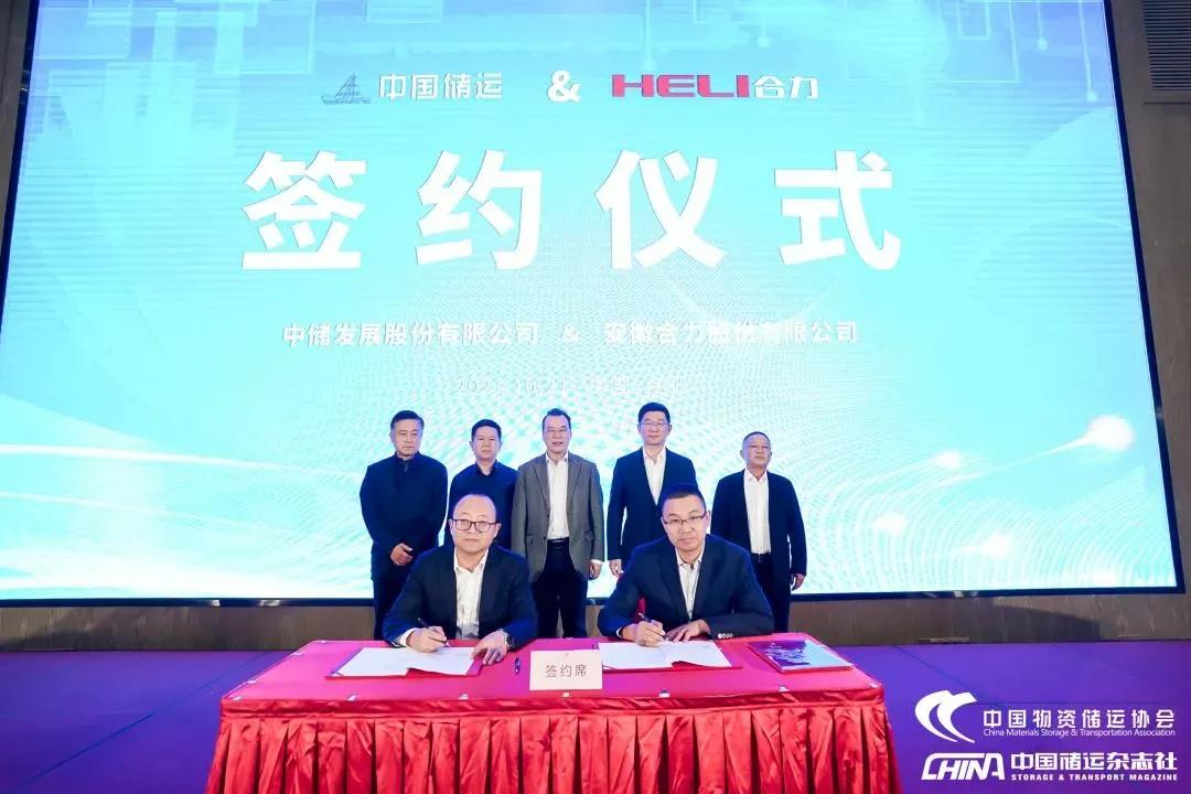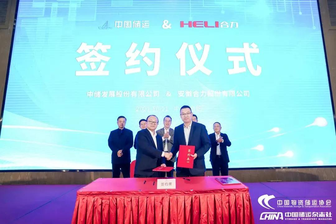 會上,中儲發(fā)展股份有限公司與安徽合力股份有限公司,按照“共享共建、共同促進物流搬運創(chuàng)新發(fā)展”的原則和目標,現場舉辦了2021-2022年度叉車框架合作簽約儀式,雙方將在聯(lián)合打造標準規(guī)范、打造智慧物流應用優(yōu)秀案例等方面建立戰(zhàn)略合作。